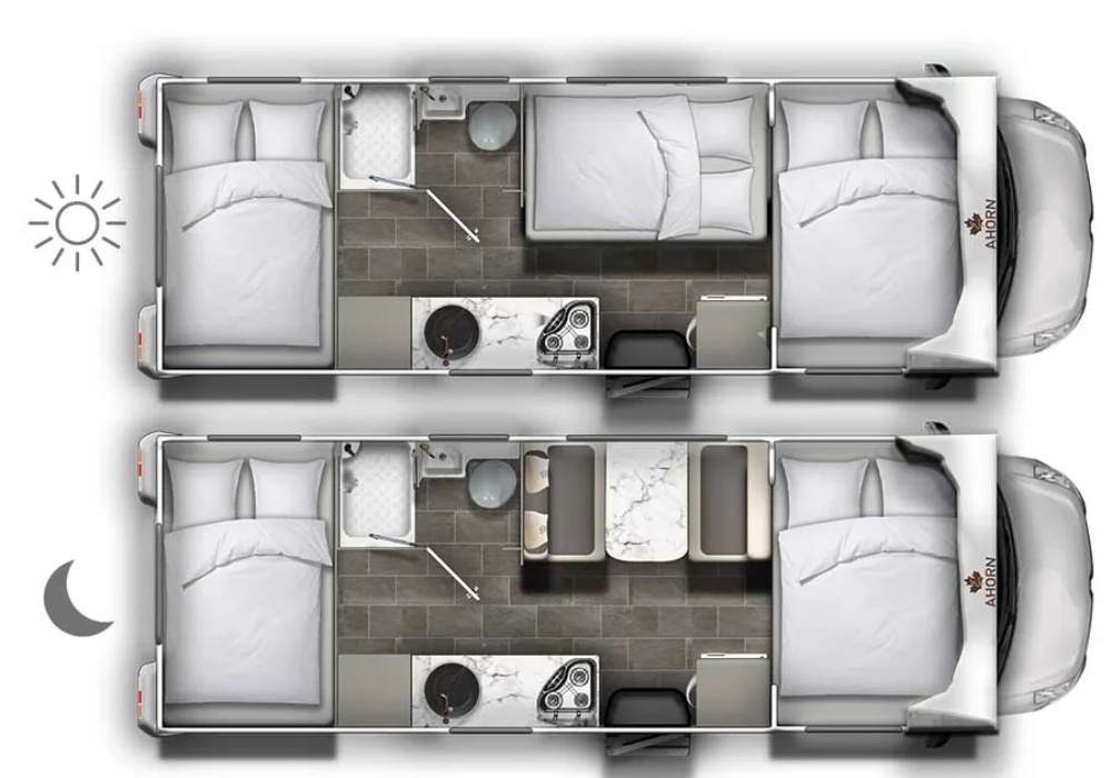 • 2 lămpi de lectură fiecare în zona de dormit patul din spate și alcov, inclusiv funcție de încărcare USB